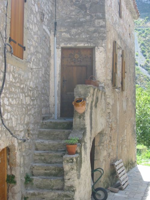 Sur la porte de cette maison on peut voir une fleur séchée. C’est une « Cardabelle », elle se ferme lorsqu’il va pleuvoir et s’ouvre lorsqu’il fait beau !