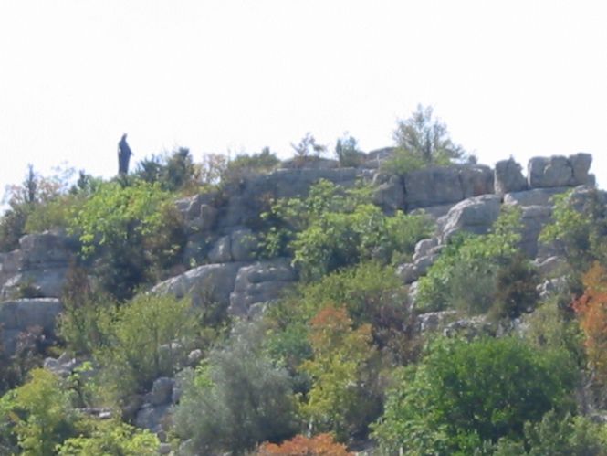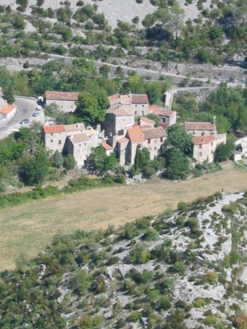 Vues du bas du village. A droite la vierge au sommet de « l’huître » protège le village